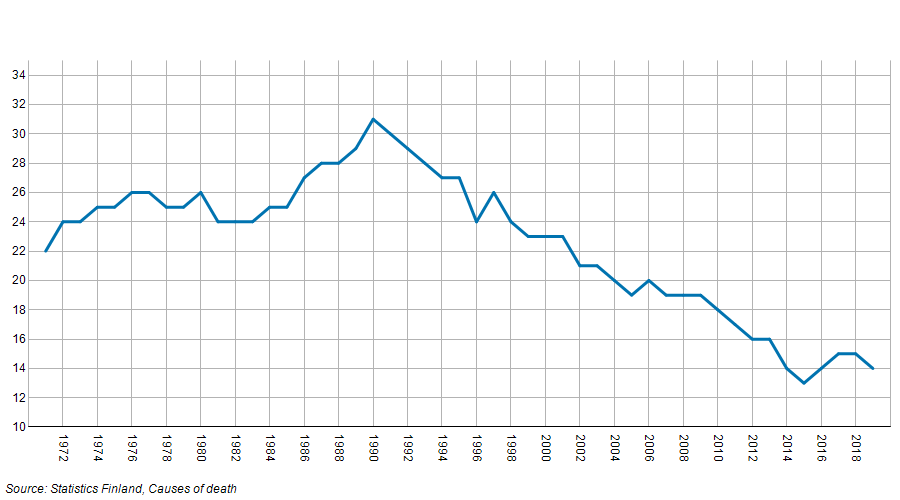 And while there has been a 21-year positive downward trend in suicides in Finland, it cannot be expected to continue without research and continuous preventive measures.