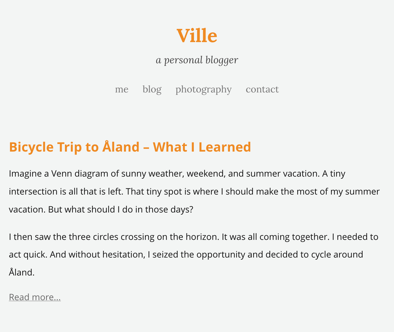 My favourite colour was orange, and I was using Sans Serif font. I didn’t have many blog posts so I figured to share the description of the post and leave a “read more” button, too.