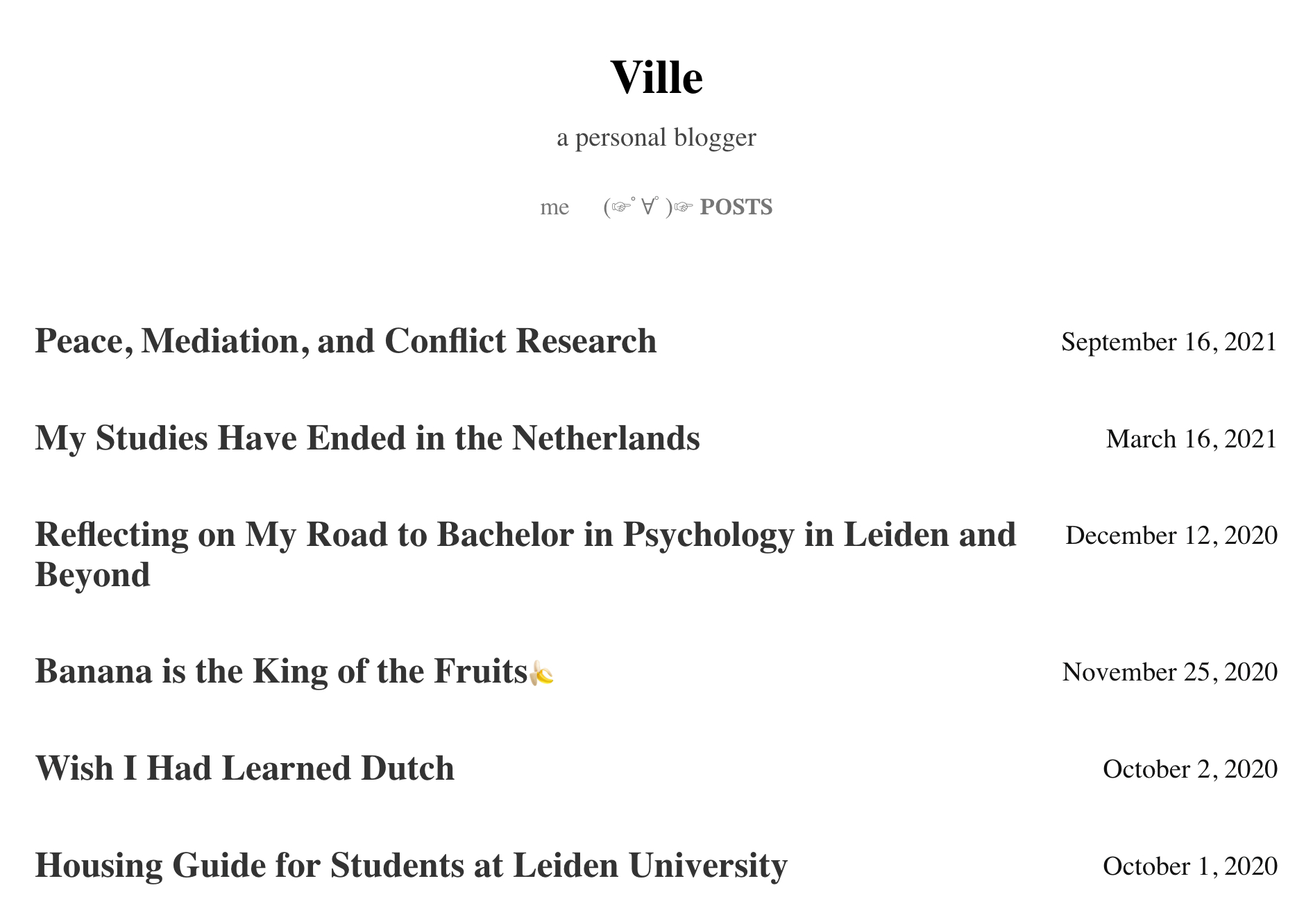 I also took away the initial descriptions of each post, and merely shared the title and the date. To this day, I like it this way. I also liked the Serif font. I capitalised all the nouns in the post headings. Now I am leaning back to only capitalising the first letter of the heading.