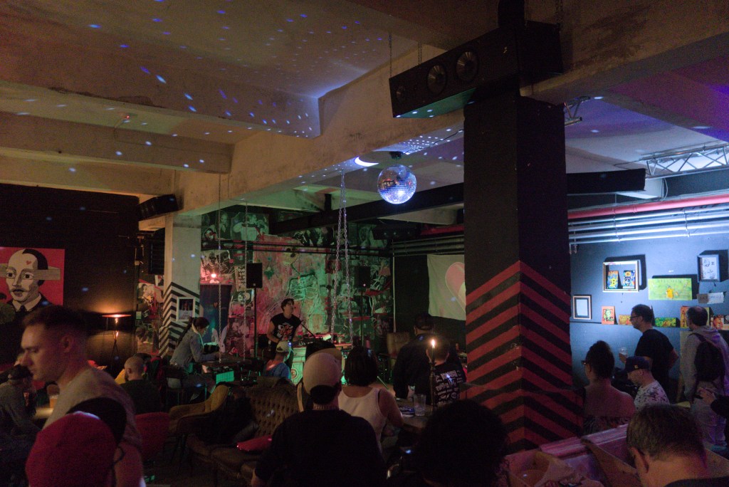 The venue was dimly lit and smoky. It smelled like the breath of a babusha that had smoked for decades. People were packed wall-to-wall with diversity of black attire, adorned with tattoos, piercings, and expressive makeup.