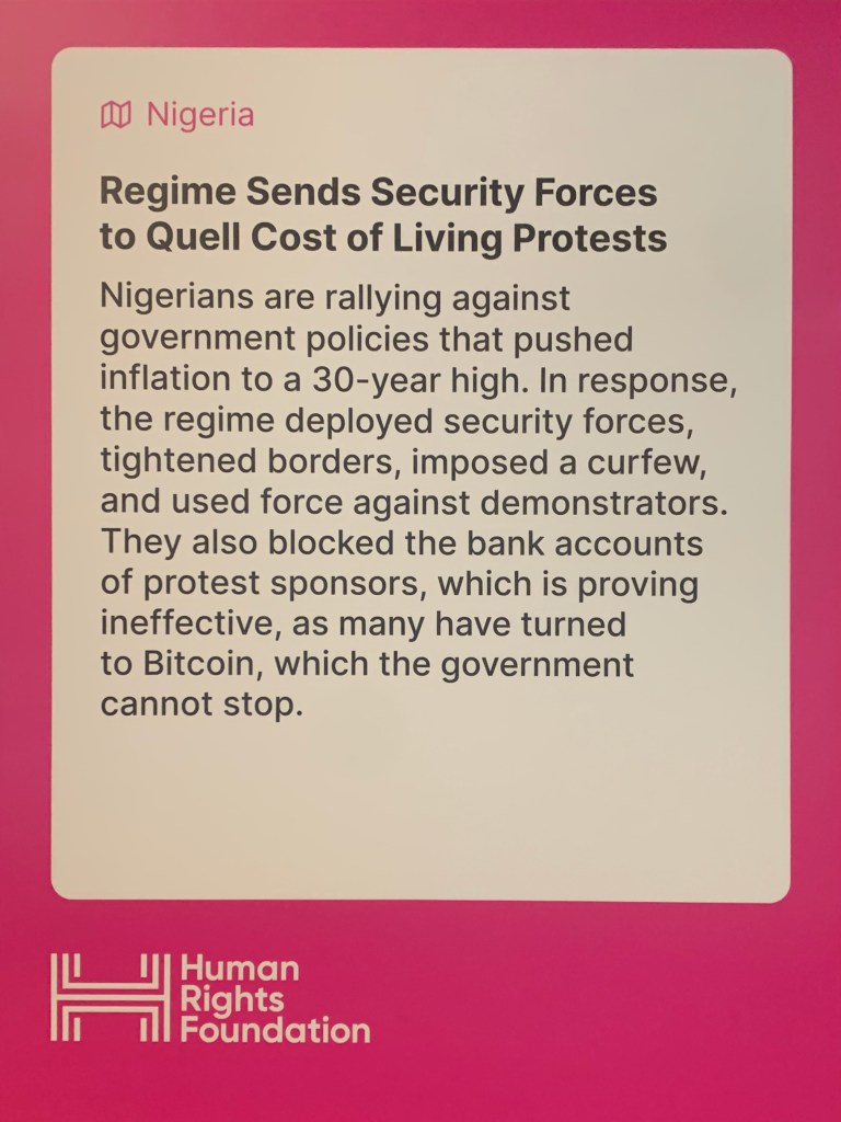 To my pleasant surprise, the dinner guests included several prominent Bitcoin human rights activists, builders, advocates and speakers. Among them were, clockwise: