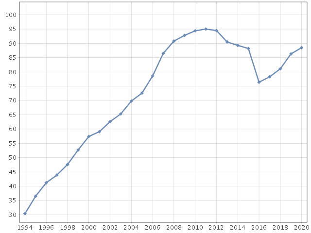 figure 4. reimbursements for depression medicines, recipients aged 18-64 per 1000 persons of the same age, 1994–2020 (THL, 2021b)
