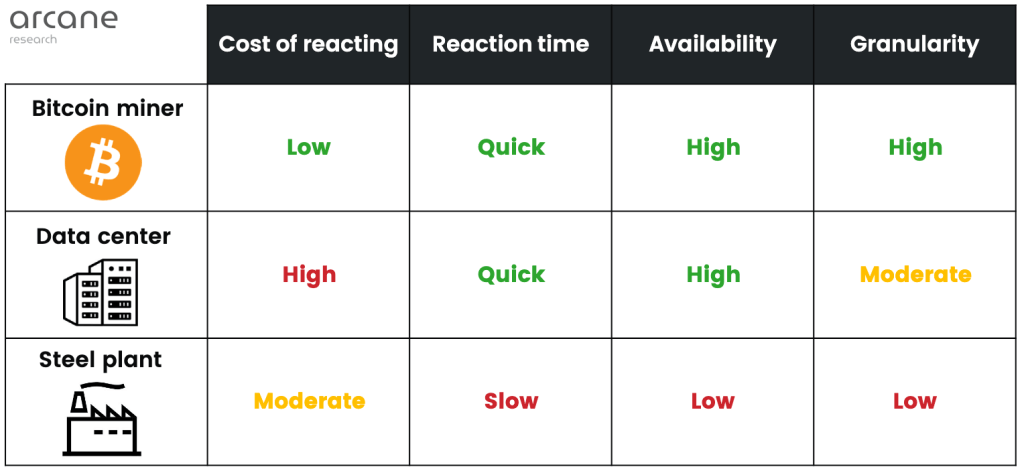 Note that miners only consume power—they don’t generate it—so they can’t replace batteries or gas turbines once the sun goes down or the wind stops. Instead, they’re a fast, interruptible sponge for surplus renewables, helping to reduce curtailment and the need for peaker plants.